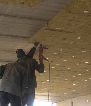 Применение плит, скрепленных клеевым составом. Этот тип огнезащиты также выполняет функцию теплоизоляции конструкции на основе бетона.